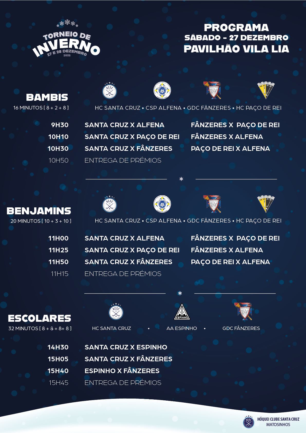 | 12h00 | Santa Cruz X Escola Livre de Azeméis |
